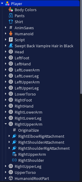 Accessories on the otherhand automatically handle welds based on the character’s attachment, e.g. if you require an attachment to be a part of the shoulder, you’d name the attachment under the accessory (if said attachment doesn’t exist, then create one) “RightShoulderAttachment” as seen here;