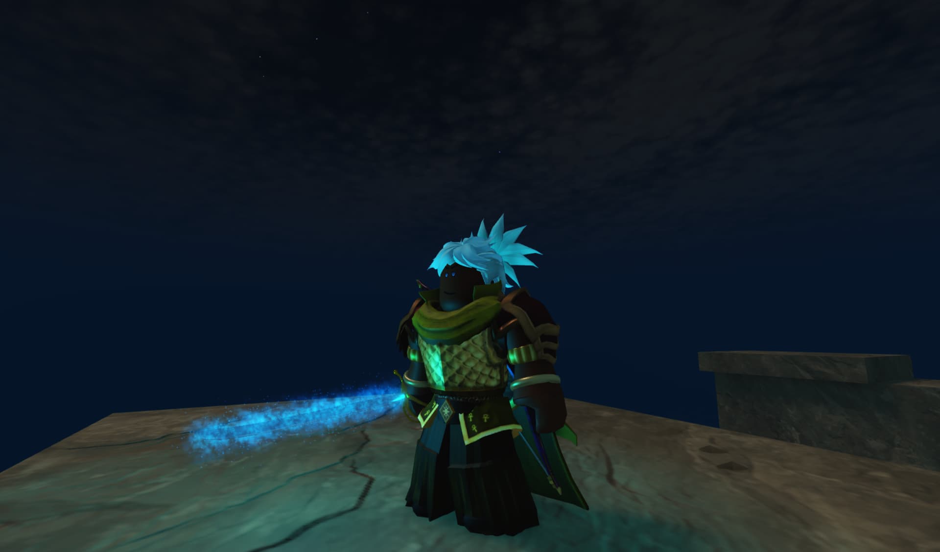 His hair and eyes were originally brown, but excessive training and overstress of his spirit powers caused them to turn light cyan to reflect his spiritual personality. At night, he gives off a light glow, just to show how much spirit energy is flowing through him.