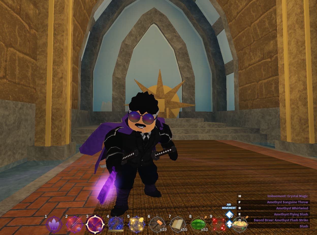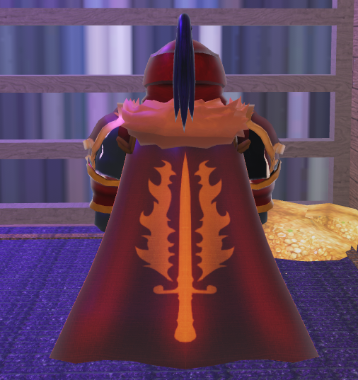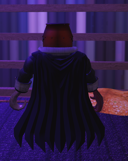 Recent drip upgrade, changed the suit and armour arms to black, changed pants to Dromeas and swapped the trimmed cape for a purple large jacket.
