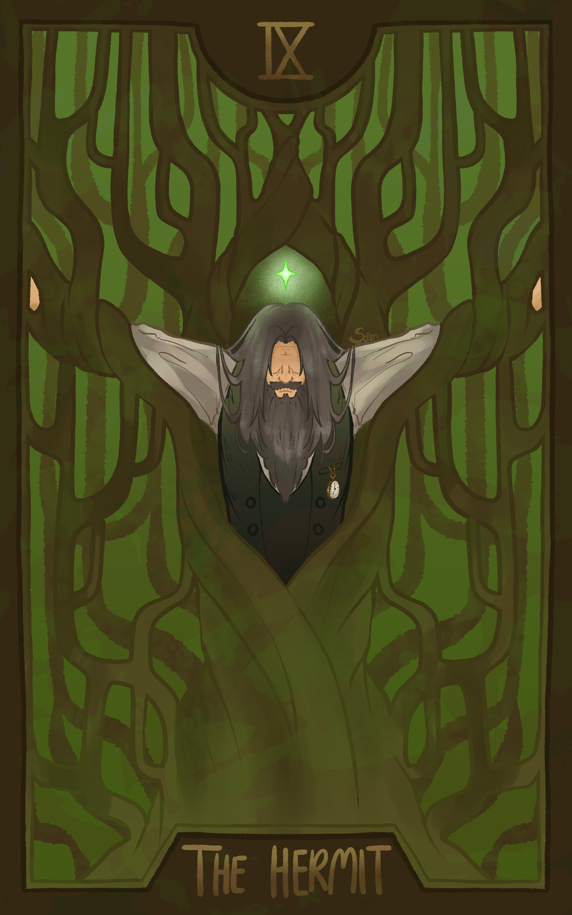 anywayw.. the hermit is a card representing knowledge, wisdom and maturity, as well as the journey to achieving it. its also representative of self reflection and isolation, which is why i thought this card suited randal the best. he literally turned himself into a tree to comprehend the incomprehensible vruh…