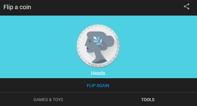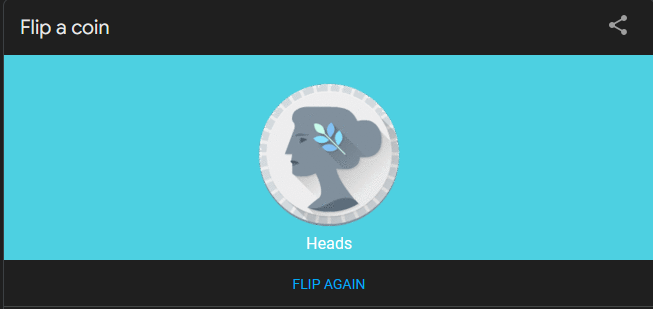 I did the little coin flip on Google recently, and I got heads NINE TIMES in a row. So I’m betting heads (even tho that might just be rigged).