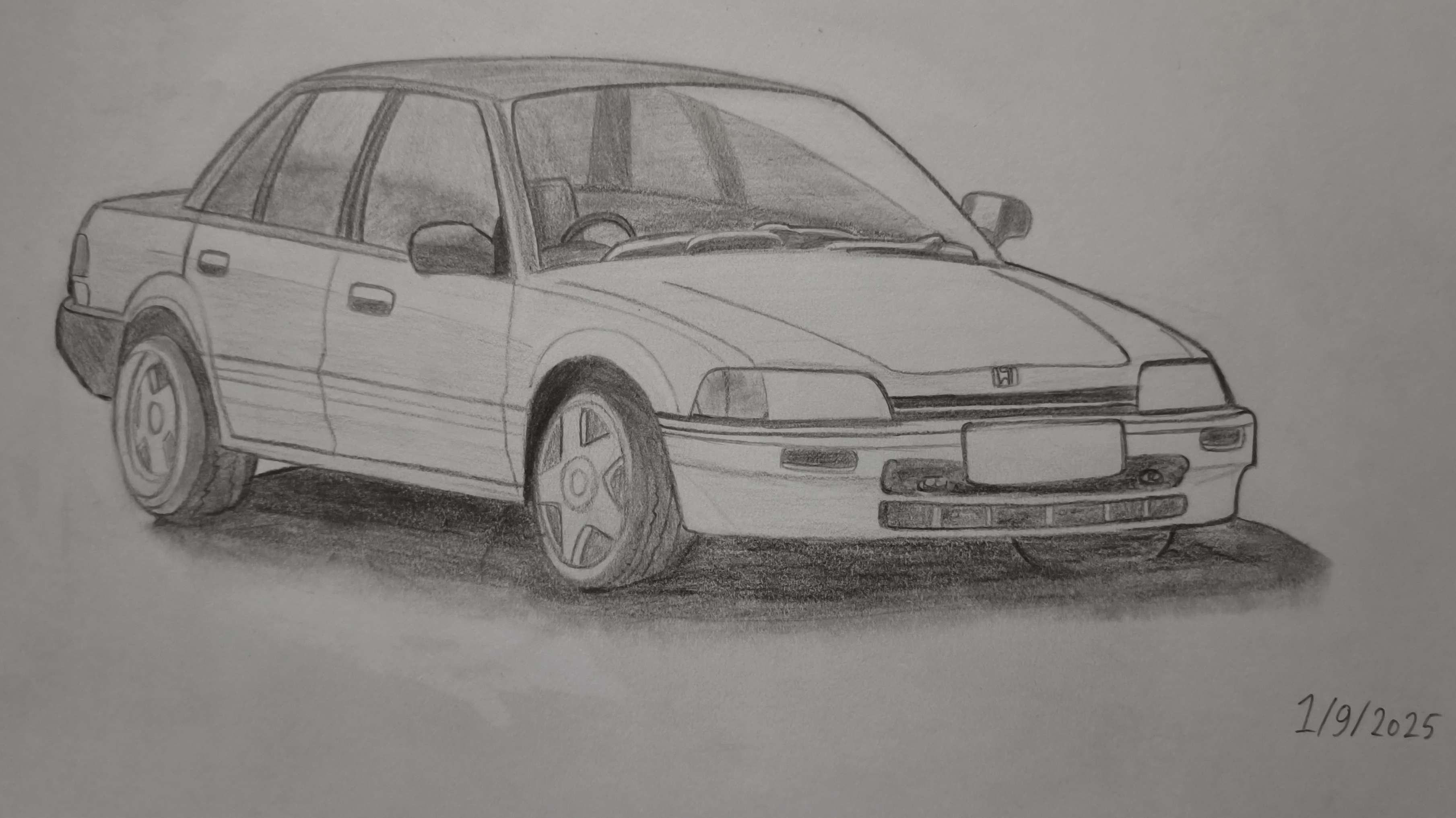 1990 Honda Civic I drew. I’ll give the paper to the car owner that I base on after getting getting approved (Thursday)