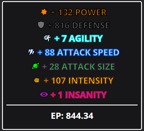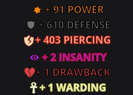 Armor stats mainly geared towards power, defense and armor piercing
