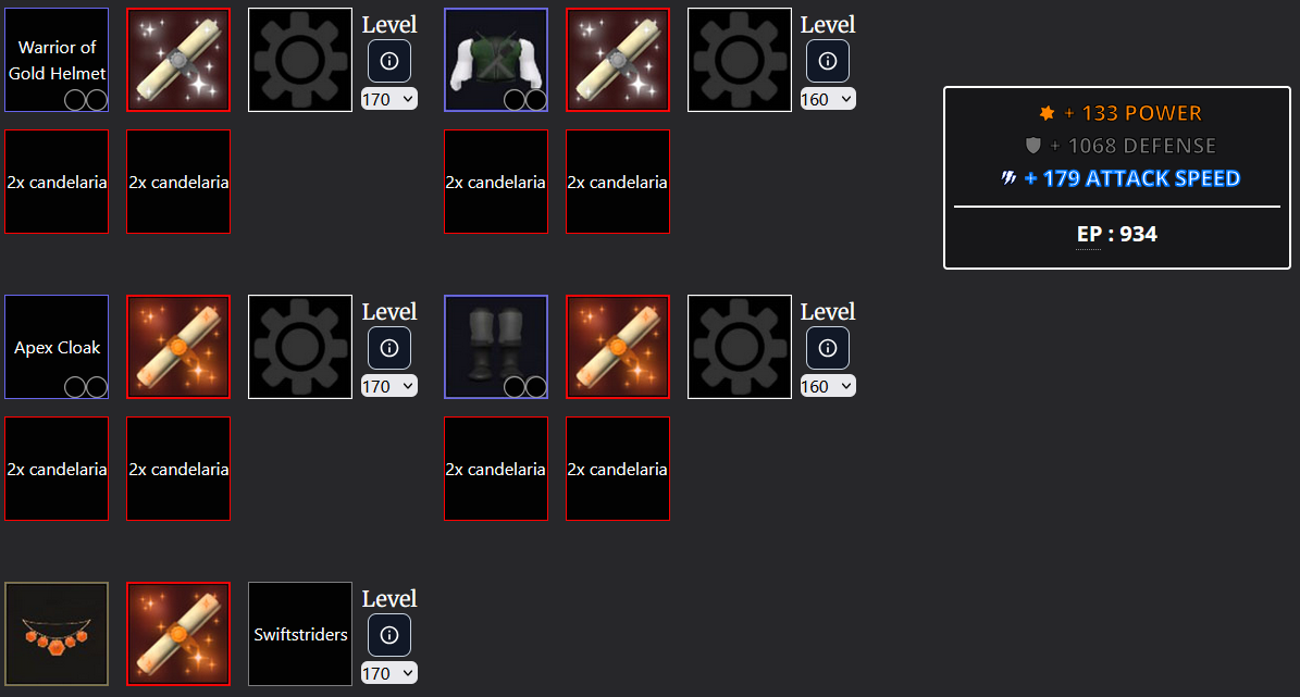 Just checked, have dupes of everything but the Chestpiece and Cloak, both of which I don’t see myself using. Also got plenty of Tier 2 enchantments, so I could probably just give them to you outright if you’re fine with that.