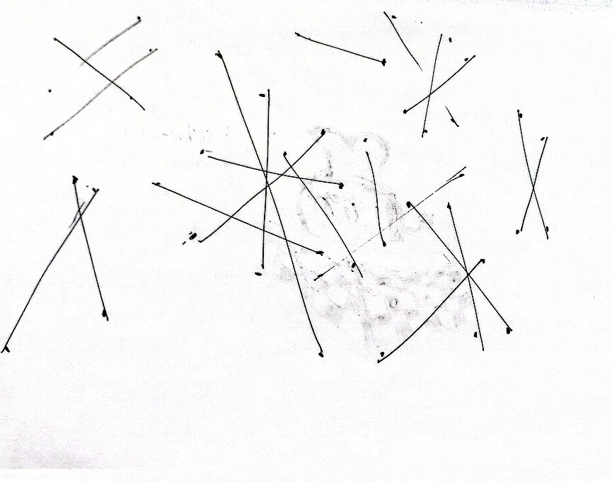 This is the 2nd part of my superimposed lines. This one is a bit sloppier than last time on account of reflexive arm movements. I put arrows to indicate what direction I was stroking in for the curved lines.