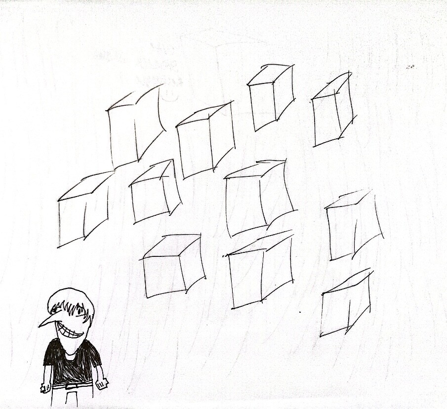 In the boxes image I drew a picture of a really long nosed man, this is to represent how the huzz be lyin