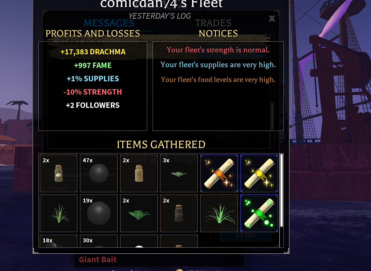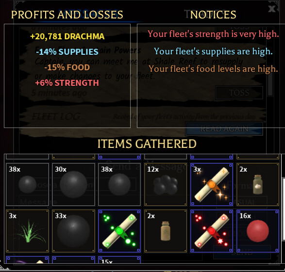 I started doing a trading task recently and I have a decently sized fleet of brigs (Doing the 1 patrol 1 trade 2 recover while maximizing profit. I could prob set it to minimize risk for more self-sustain if I wanted to pay less attention to it. I can even add more brigs.)