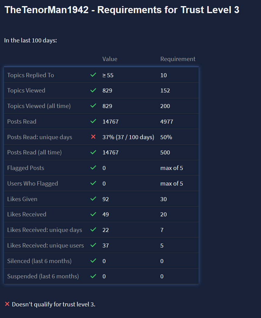 Yeah, a minimum of 50 days are needed to reach TL3