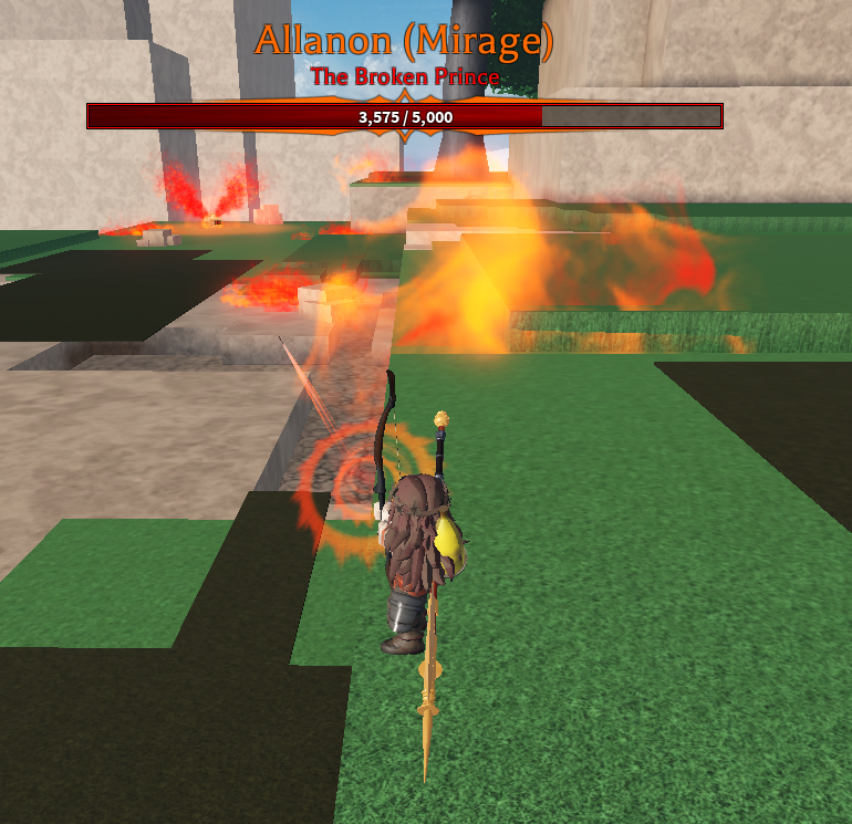 step 3. position yourself by this tree on the right side of his lil platform and m1 him with your ranged weapon of choice (I prefer siren bow or greatbow)
