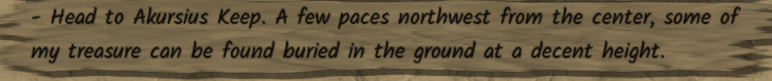 Some of these treasure locations make me want to suggest the charts making something akin to a decently sized quest location indicator when you get within a reasonable distance just so you could know that your " buried in the ground halfway east southeast on a decently sized hill" spot was actually a “buries in the ground halfway south on the sea level” spot