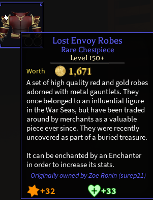 Lost envoy is an incredibly rare and therefore strong set comparable to sunken armor, with the main stat happening to be power. However, it has no downsides, and could even be argued as a “balanced” set due to giving lifesteal (is that what that stat is now?), making it a safer option.