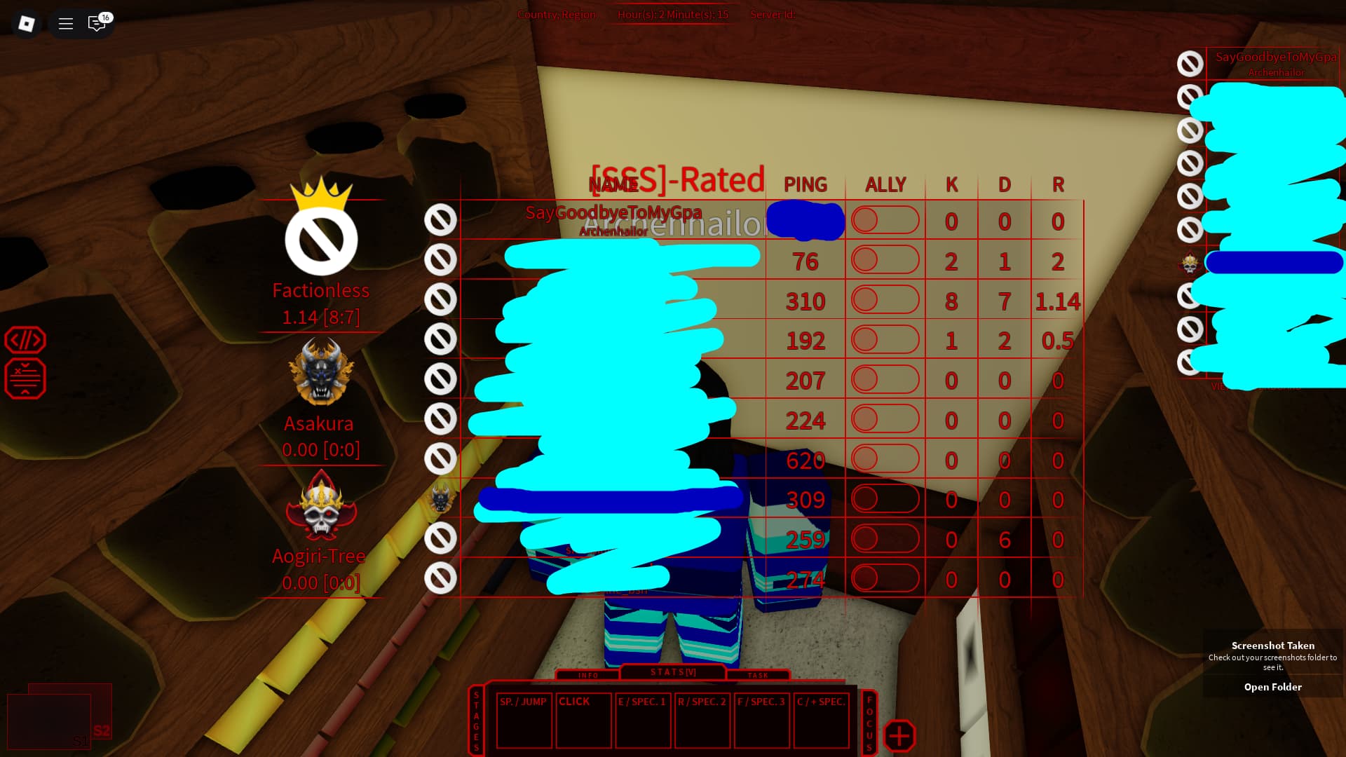 I censored every username just because I feel like it’s a safe thing to do. For 1 username (darker blue censored), that’s the guy I hovered my cursor over to see their country. For the 2nd image with the blue censor on my ping, that’s when I showed my country.