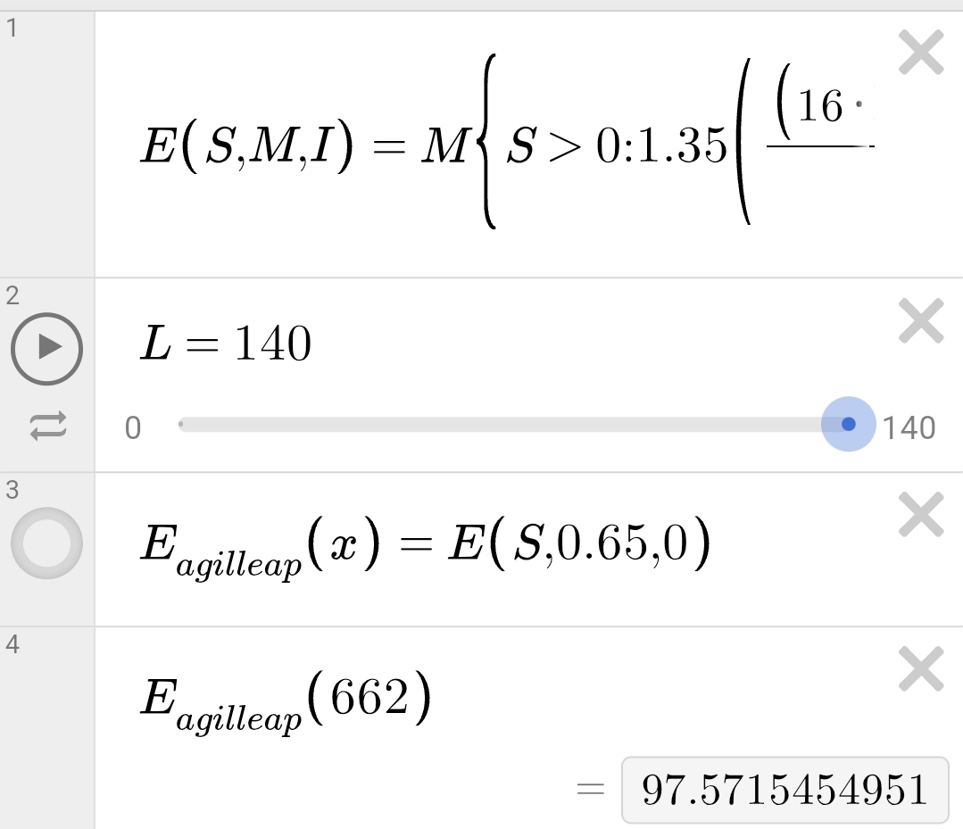 This is also neglecting the fact that Agility reduces momentum. Momentum is the primary driver of distance because as I said before, the distance travelled is determined by decelerating a moving object. Which means there is an exponential relationship.