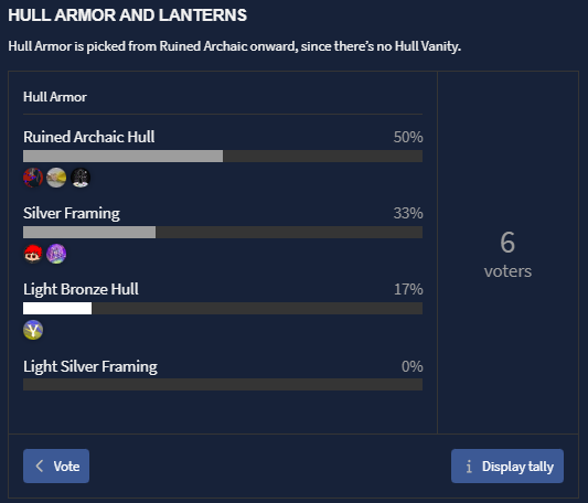 Hull Armor is picked from Ruined Archaic onward, since there’s no Hull Vanity.