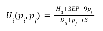 The payoff to player i, given opponent allocation pj, is