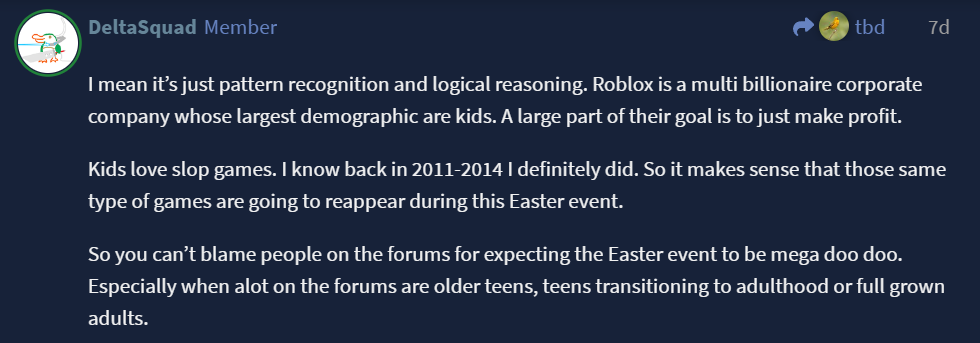 I don’t care that you had hope for this event. I care more so about the fact that you think people on the forums are debbie downers for no reason. I already explained why people are immediately not fond of the event being announced so ill just drop a screen shot of what i said days ago.