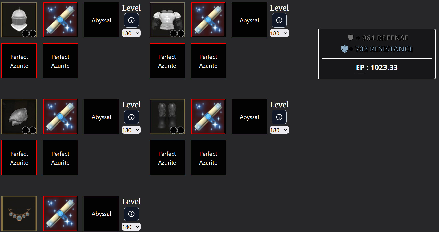 Finally, I can show people my insane ResistanceLord build. It’s possible to squeeze out one more point of Resistance if you use the Lost Diplomat Pauldrons instead of Abyssal Titanium, but you lose a ton of Defense, and you kind of need that for the build to be as funny as possible.