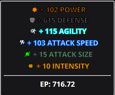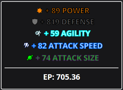 Well I use shadow and poison, 146 power, 900 def, 50 atk size, 50 agility on my main slot and ig its considered trash in views of other people