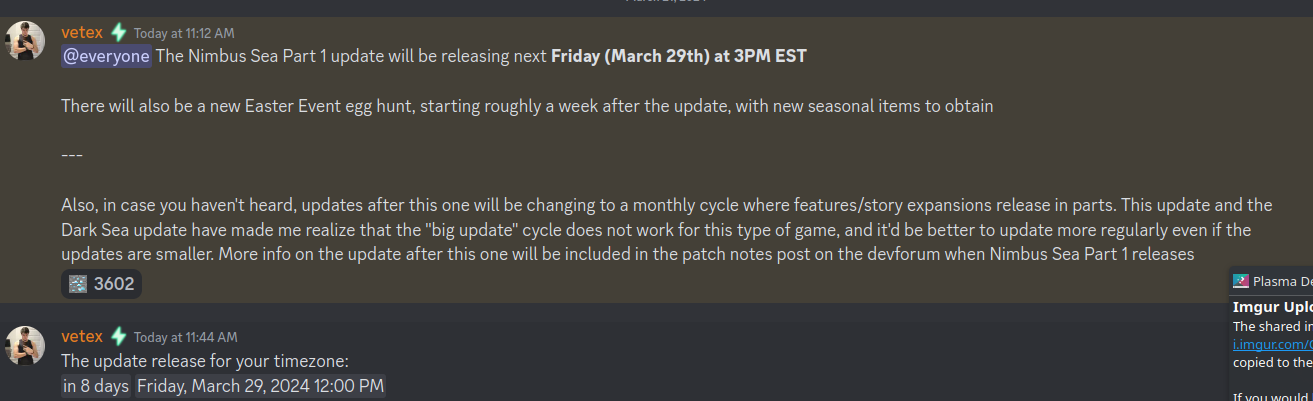 breaking news: vetex has been hit by a car resulting in the nimbus update being cancelled. Developer no longer able to work on the game