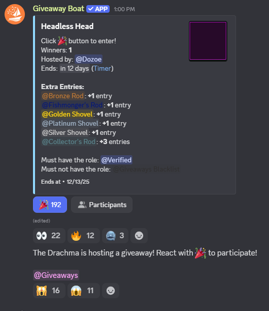 To celebrate reaching 1,000 members, we have decided to hold a Drachma December event where we giveaway items daily for 12 days! The first day would be a headless giveaway as seen here: