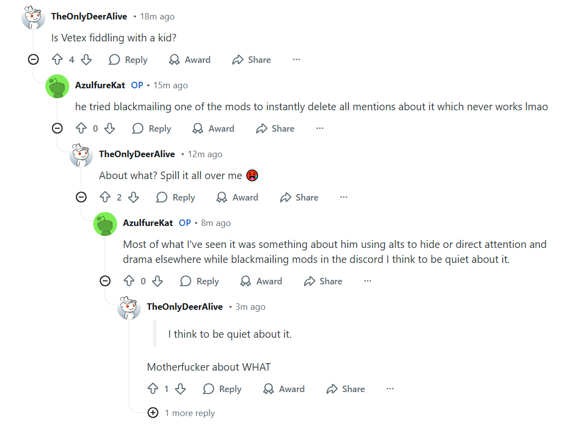 Vetex is “fiddling with a kid” /j