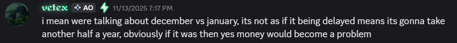 personally i dont believe december, even if vetex did imply it. too early